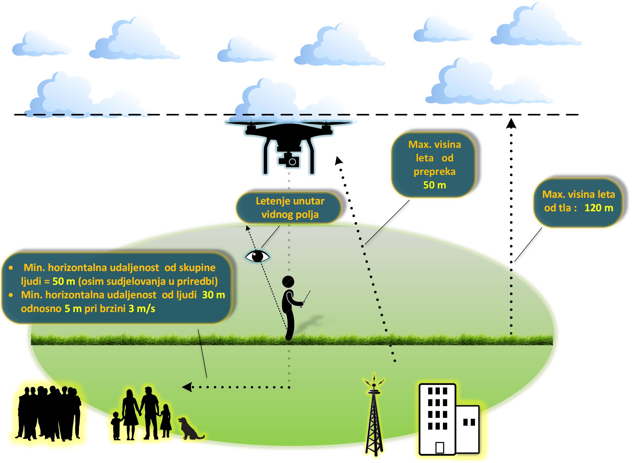 14.12.2018. 1614 RPAS/UAS – izmjene propisa Poštovani korisnici zračnog prostora, Ovim putem obavještavamo vas da je u Narodnim novinama objavljen Pravilnik o sustavima bespilotnih zrakoplova („Narodne novine“, broj 104/2018) koji stupa na snagu 15. prosinca 2018. godine. Glavni razlog izrade novog Pravilnika je prilagođavanje nacionalnog sustava budućem sustavu Europske unije u cilju lakše provedbe nove Uredbe o bespilotnim zrakoplovima, kada stupi na snagu. Pravilnikom je proširena primjenjivost na bespilotne zrakoplove bez obzira na kinetičku energiju koju mogu postići, izmijenjeni su opći i operativni uvjeti (npr. letenje noću, letenje u blizini aerodroma, letenje iznad skupine ljudi, ograničenje visine leta, udaljenost od ljudi i skupine ljudi i dr.) te je u skladu sa budućim EU propisom prestala potreba propisivanja tehničkih uvjeta (broj motora i opremljenost padobranom bespilotnog zrakoplova) koji su uređeni trenutno važećim Pravilnikom o sustavima bespilotnih zrakoplova („Narodne novine“, broj 49/15 i 77/15). Dodatno, istog dana (15. prosinca 2018. godine) na snagu stupa i Pravilnik o izmjenama i dopunama Pravilnika o upravljanju zračnim prostorom („Narodne novine“, broj 104/2018). Pravilnikom o izmjenama i dopuna Pravilnika o upravljanju zračnim prostorom izmijenjeni su zahtjevi koji se odnose na obvezu rezervacije zračnog prostora za letenje bespilotnim zrakoplovima. Grafički prikaz novih zahtjeva prikazan je na dalje priloženim slikama. Za detalje oko postupaka rezervacije zračnog prostora možete se obratiti Hrvatskoj kontroli zračne plovidbe. Povratak na vijesti